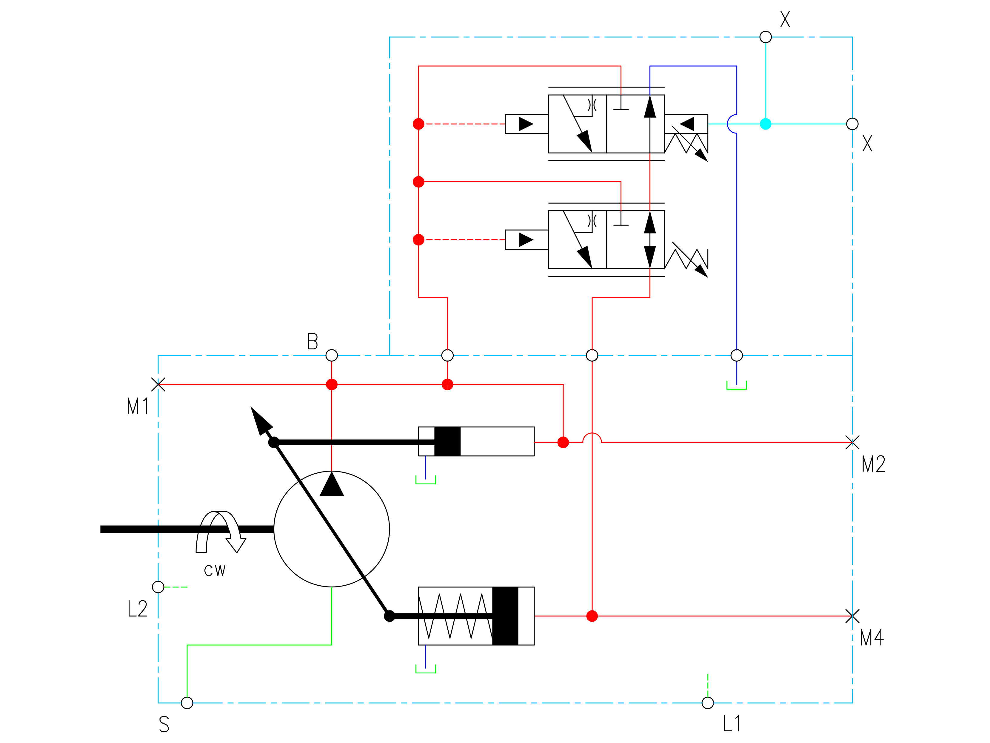 Regler: Tryckkompensator som säkerställer maximalt flöde från pumpen till systemet samtidigt som det förinställda trycket bibehålls, belastningsavkänning, PC-styrd tryckreglering.
