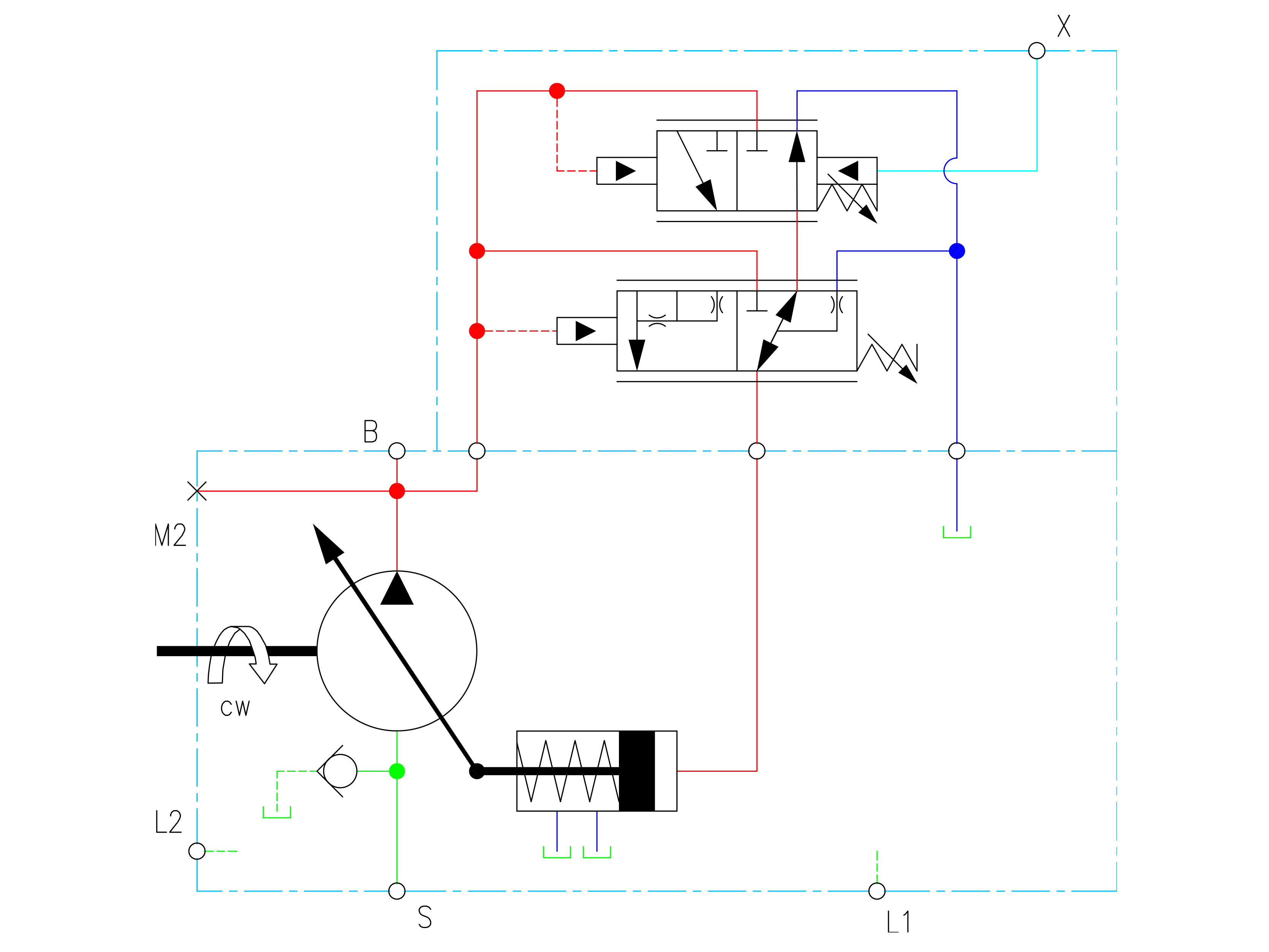 Regler: Tryckkompensator som säkerställer maximalt flöde från pumpen till systemet samtidigt som det förinställda trycket bibehålls, belastningsavkänning, PC-styrd tryckreglering.