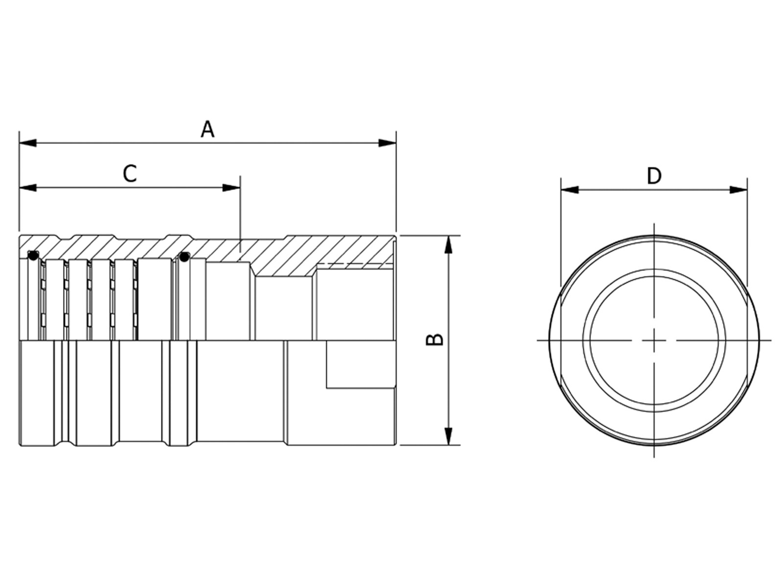 DM80002G50 - Koppling Pyplok Rak med stopp, Inv-50 mm Stål