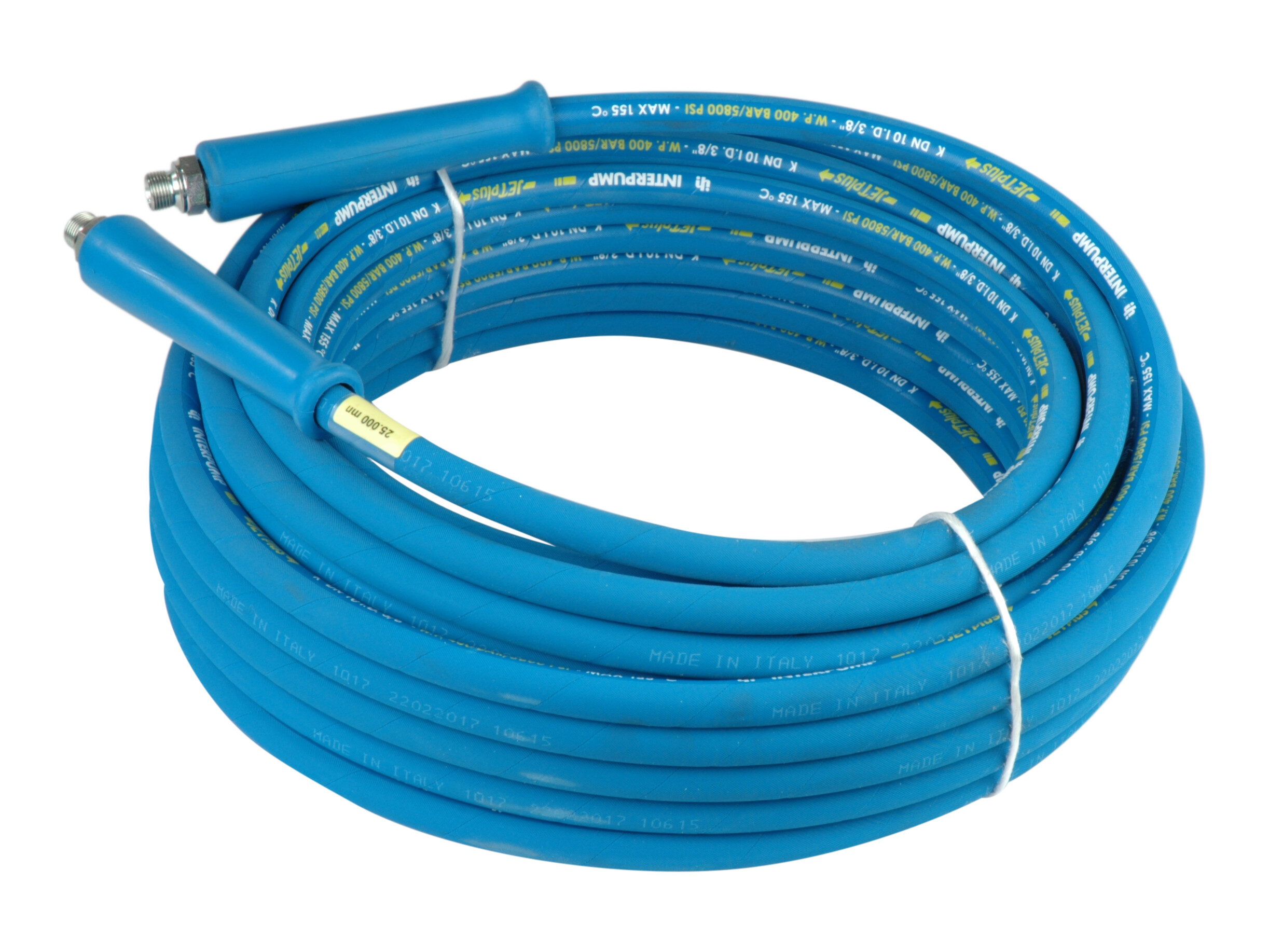 Blå tvättslang för högtryckstvätt. Tål upp till 155gr. varmvatten.