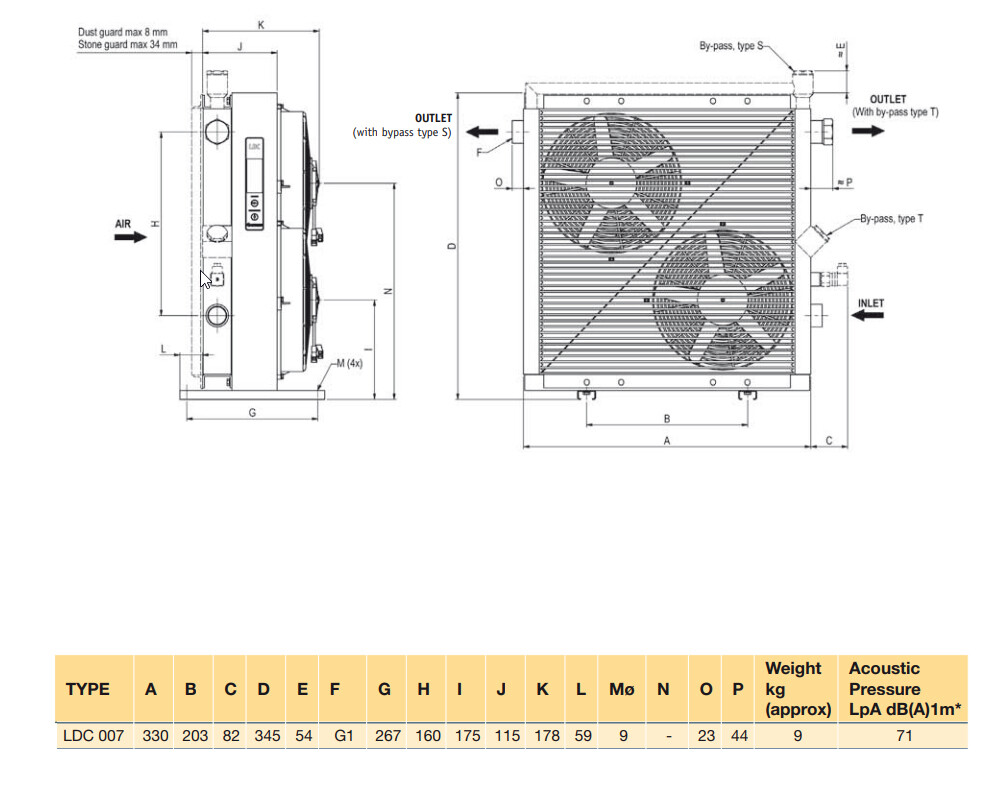 Luftoljekylare med DC-motor och integrerad by-pass