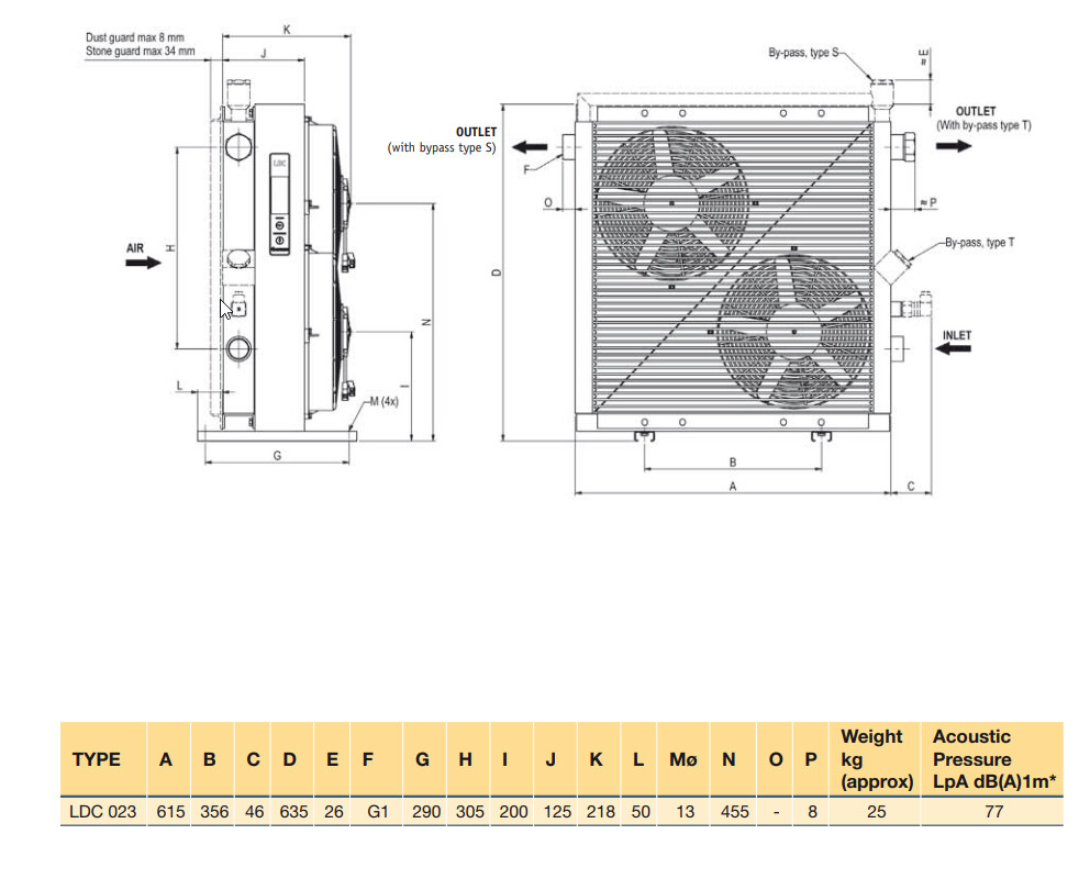 Luftoljekylare med DC-motor och integrerad by-pass