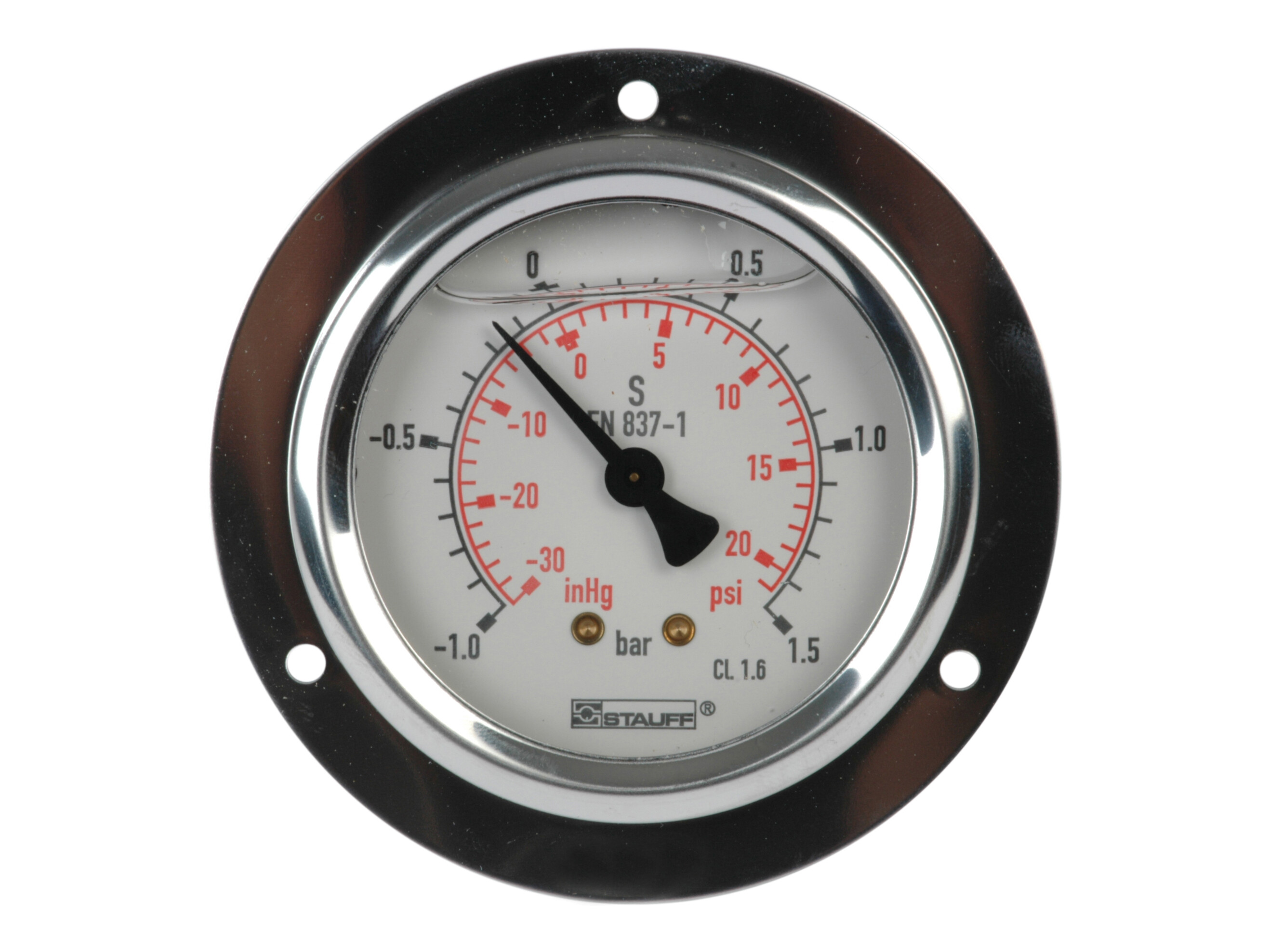 Standard med dubbelskala och indelning i bar och PSI.
