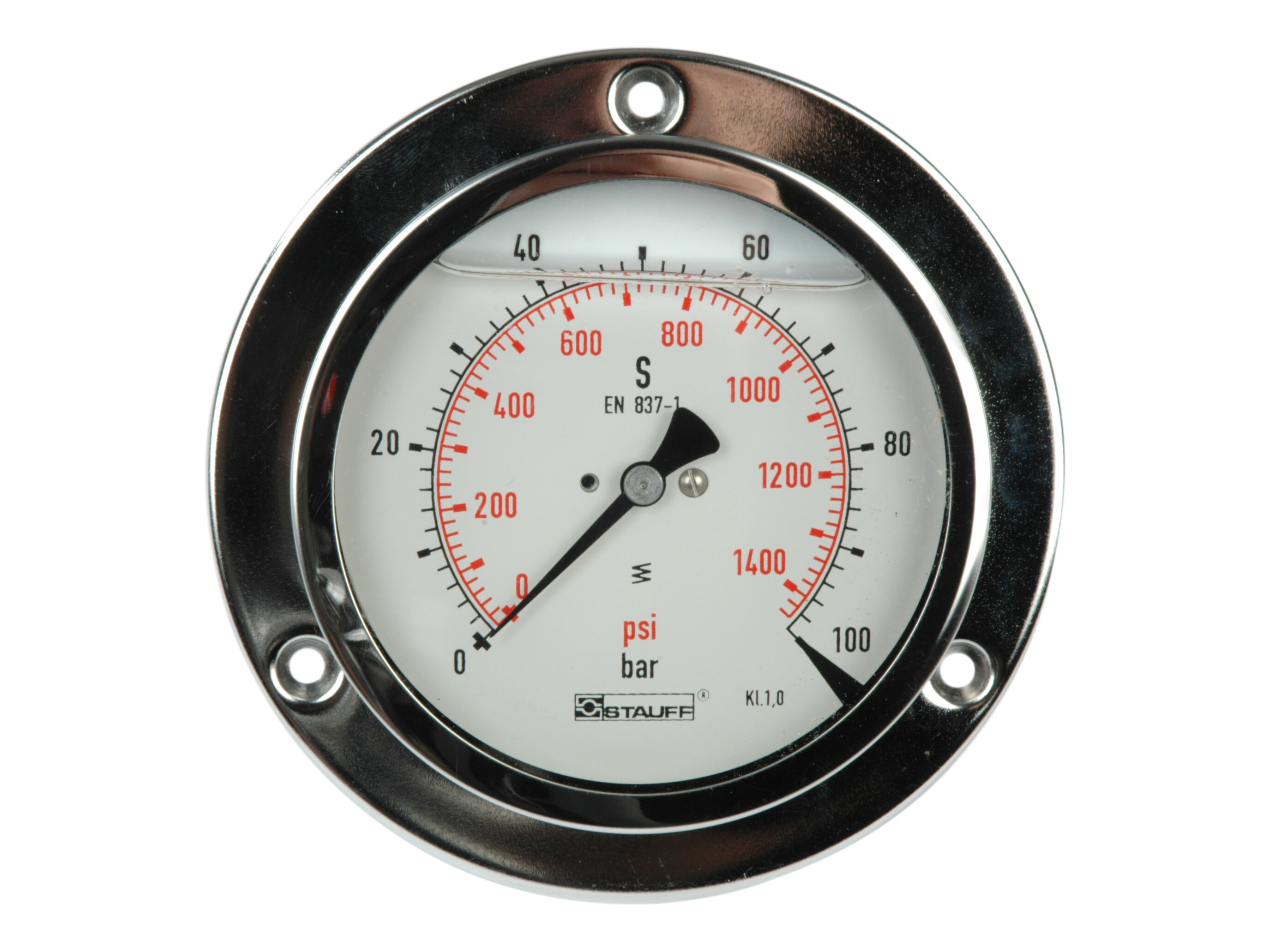 Manometer G1/2'' Anslutning bak med frontfläns 0-100 bar