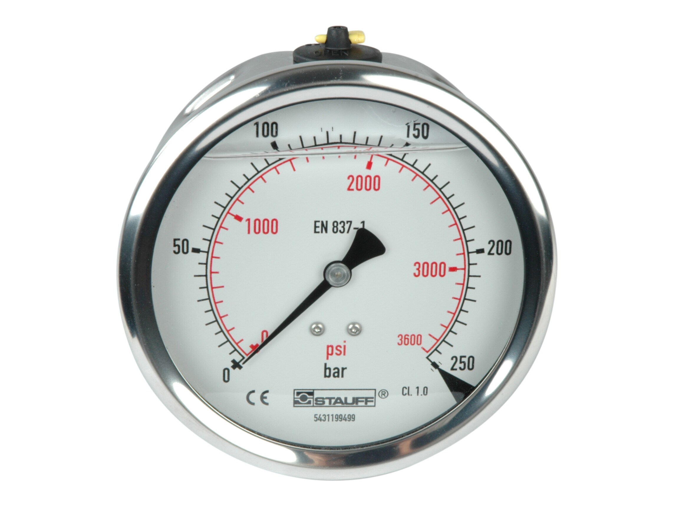 Standard med dubbelskala och indelning i bar och PSI.