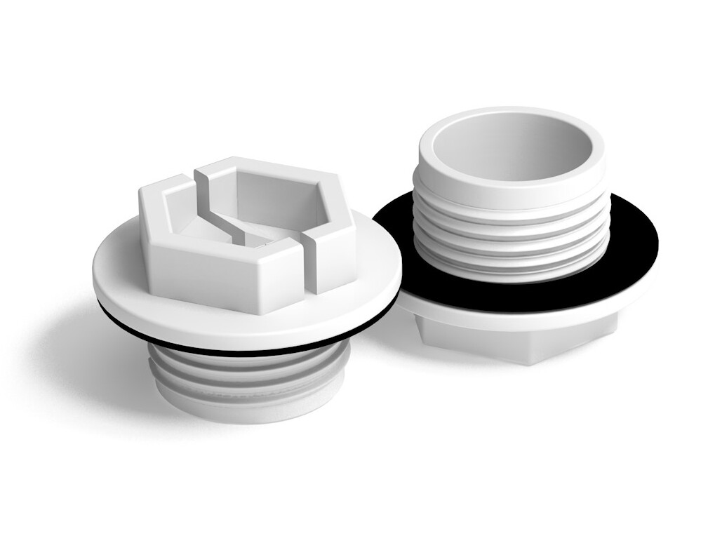 Denna gängade plugg av naturfärgad värmetålig nylon har en TPE-bricka, kan även fås utan packning. Den passar för BSP-gängor och kan placeras och tas bort för hand eller med elverktyg. Materialet klarar arbetstemperaturer från -30 till max +90 °C.