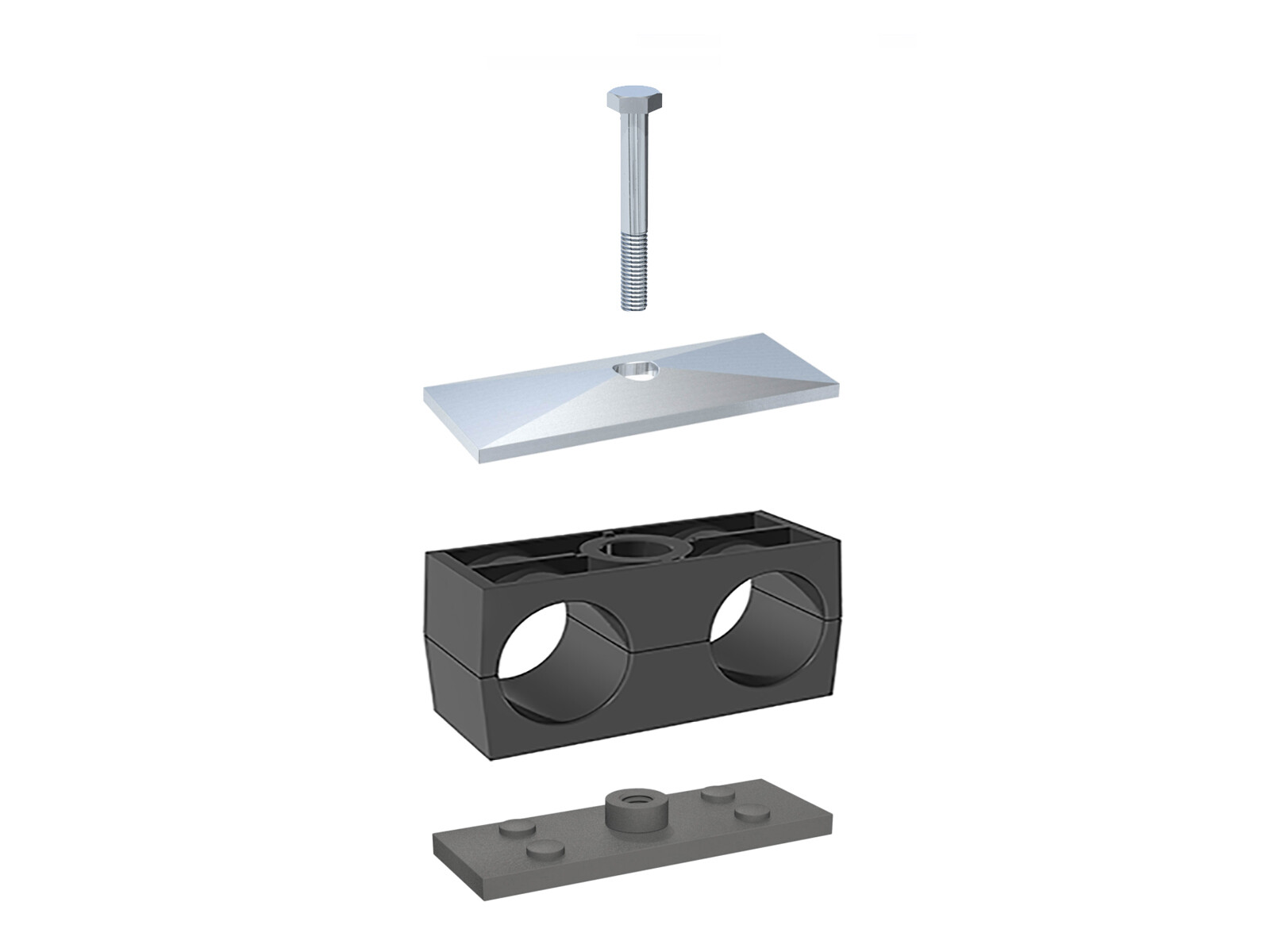 Rörklammer dubbel komplett, svart, slät - SP-PPHGDAS